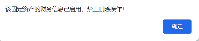 :点晴FMS-弹出提示:该固定资产的财务信息已启用,禁止删除操作!