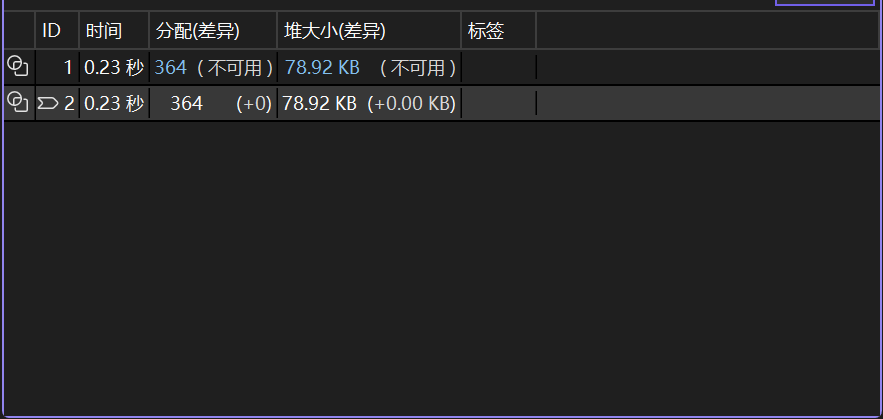 如果我们添加了delete[] p,那就是用完后内存就被归还了。再拍两次快照,对比差异接近 0,泄漏被修复。