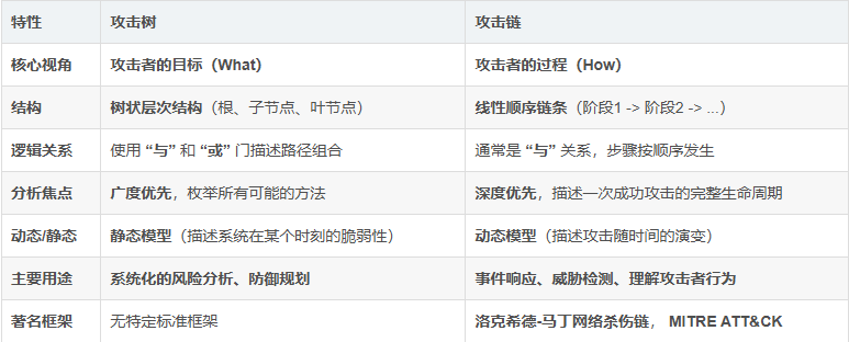攻击树和攻击链是网络安全领域中两个核心的威胁建模工具,它们从不同的视角和分析层次来描述攻击,相辅相成。