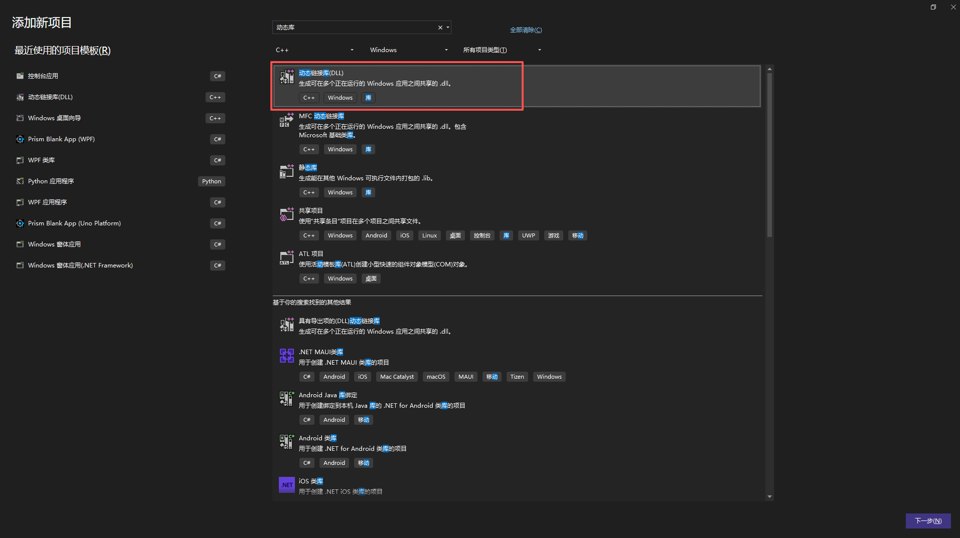 二、创建C++库 在解决方案上右键--添加--新建项目,建一个C++动态链接库工程,