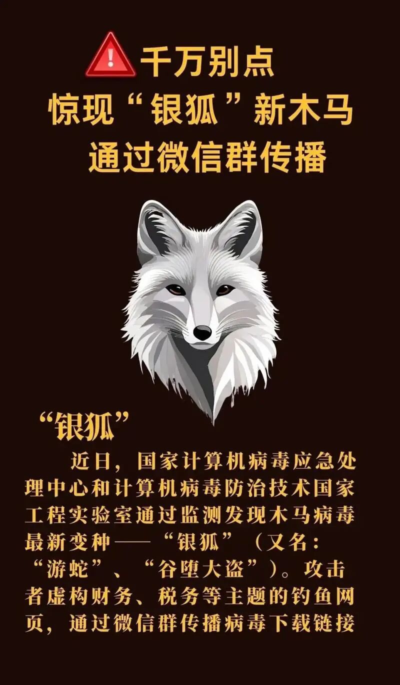 三、银狐病毒的危害 “银狐” 木马病毒的危害性远不止于窃取数据,犯罪分子在控制受害者电脑后,还会通过 “远程操控屏幕” 的方式,实施更具迷惑性的诈骗操作 —— 整个过程隐蔽且精准,利用社交平台的信任关系与财务人员的工作场景,让受害者防不胜防,最终实现病毒扩散或经济诈骗的目的,主要集中在两类手段: 一类是“群聊潜伏传播木马”。一旦电脑被 “银狐” 控制,犯罪分子会悄悄浏览受害者的社交软件(如企业微信、QQ)群聊列表,优先选择财务群、部门工作群等 “高价值群体”,远程操控鼠标将隐藏的木马文件(常伪装成 “报销模板”“财务新规”)转发至群内,并附上 “请大家及时下载学习”“急需填写后反馈” 等诱导性话术。 群成员若放松警惕点击下载并运行文件,设备会立即感染“银狐” 木马,形成 “连锁感染”;而在文件转发成功后,犯罪分子会迅速操控受害者账号退出该群聊,或删除转发记录,抹去操作痕迹,降低被发现的概率,让后续追溯难度大大增加。