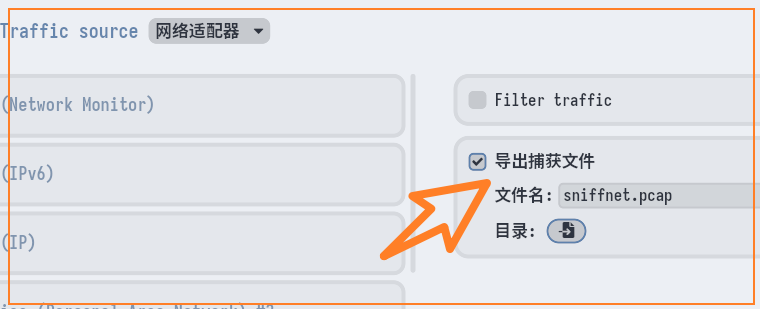 sniffnet 也有抓包功能,在监控前选择导出捕获文件即可。
