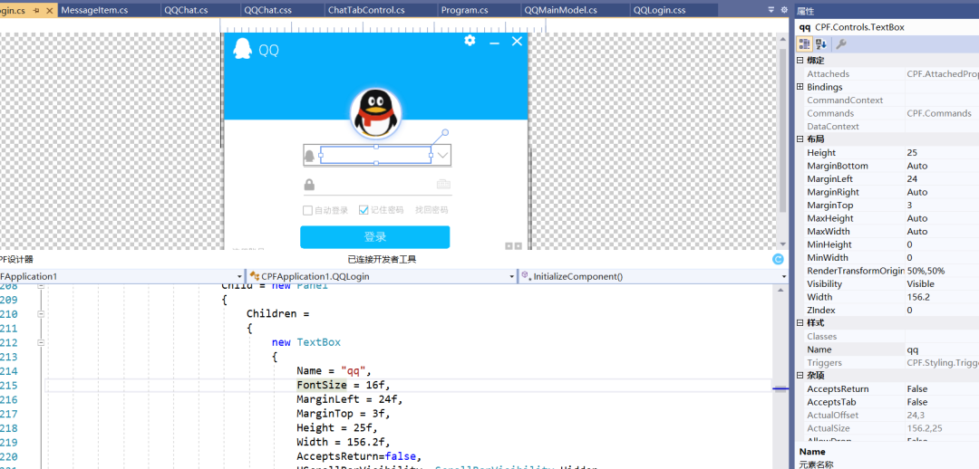 CPF(C#跨平台UI框架)CPF 是一款基于 C# 的跨平台 UI 框架,兼容 .NET Standard 2.0 和 .NET Framework 4.x,可通过 .NET Core 实现在 Windows、macOS、Linux 等平台上的一致运行体验。.NET4 版本还可兼容 Windows XP。 ![]() 框架理念和WPF类似,但是没有Xaml,直接用CSS和C#代码描述。 CPF 不依赖系统原生控件,确保各平台视觉与交互效果完全一致。框架支持 窗体与控件透明、异形窗体、SVG 图标渲染、动画效果、数据绑定、Mvvm 模式及 CSS 样式描述 等特性。 开发者可使用 CSS 与 C# 代码 灵活描述界面样式与逻辑,提供 数据上下文与命令上下文,简化依赖属性与绑定的写法。 CPF 还内置 可视化设计器与调试工具,可直接生成 C# 代码,方便界面开发与元素调试。 框架延续了 WPF 的设计理念——一切控件皆可模板化,轻松实现多样化的 UI 效果。 除与平台底层 API 的必要交互外,CPF 做到了真正的“一次编写,到处运行”。 框架全面支持国产化系统与硬件,包括 国产 Linux 发行版 及 龙芯、飞腾、兆芯、海光 等 CPU 平台。 功能特性